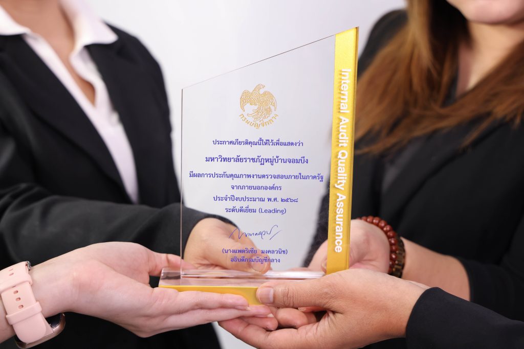 สำนักงานตรวจสอบภายใน มหาวิทยาลัยราชภัฏหมู่บ้านจอมบึง ได้รับโล่ประกาศเกียรติคุณการประเมินการประกันคุณภาพงานตรวจสอบภายในภาครัฐจากภายนอกองค์กร ประจำปีงบประมาณ พ.ศ. 2568 ในระดับดีเยี่ยม (Leading)